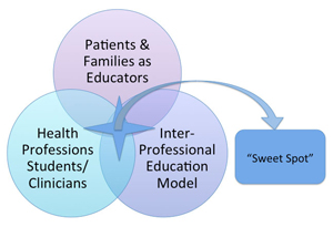 The materials in this section of the website focus on that “niche” or “sweet spot” – the education of health professionals with the involvement of patients and families as educators. The examples of successful programs and other tools are designed to help a variety of institutions (e.g., schools of medicine, nursing, allied health as well as hospitals and other organizations) begin or expand their efforts to involve patients and families in this important way.