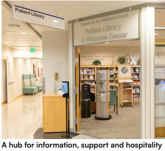 The Patient Library was also a recipient of the 2024 PFAC awards. It provides information and a welcoming space where patients and families from all backgrounds and with different language and literacy can find useful information and support they need. The Patient Library provides patient and family orientation sessions on the Cancer Journey for patients and families. They are held in-person and online, and in English and Spanish, through the Patient Library. The Patient Library is staffed by three patient and family specialists and PFA volunteers.